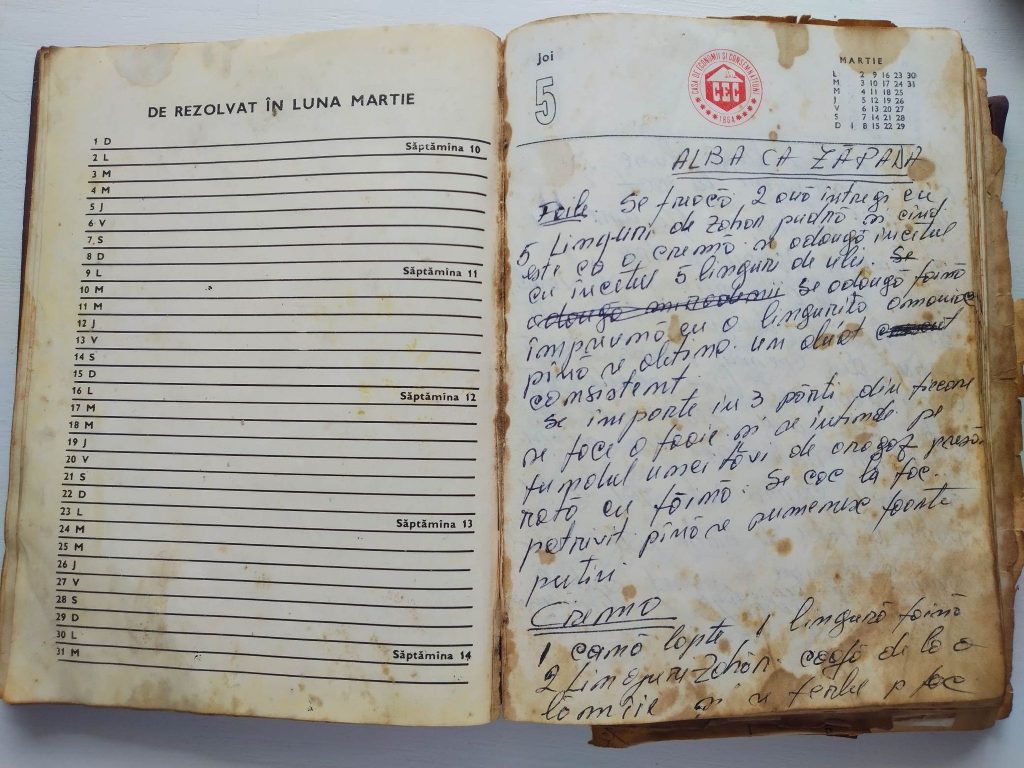 Foile. Se freacă 2 ouă întregi cu 5 linguri de zahăr pudră și, când este ca o cremă, se adaugă încetul cu încetul 5 linguri de ulei. Se adaugă făină împreună cu o linguriță amoniac până se obține un aluat consistent.