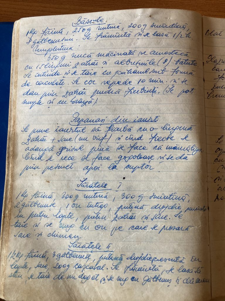1 kg făină, 250 g untură, 200 g smântână, 8 gălbenușuri. Se frământă și se lasă 1/2 h.