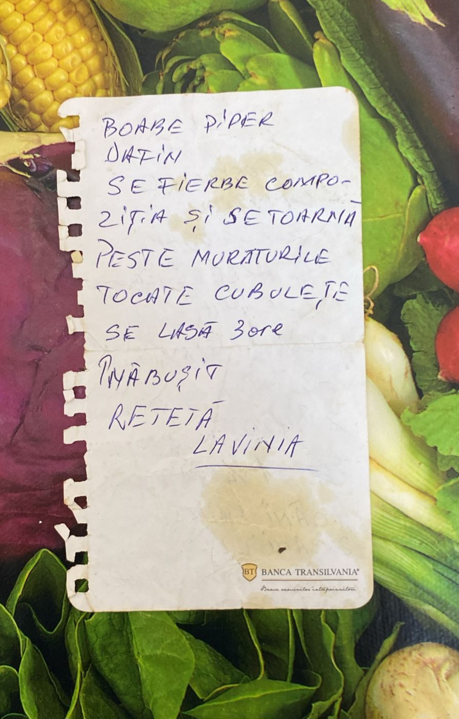 Descoperă Caietul de RețeteBOABE PIPER DAFIN SE FIERBE COMPOZIȚIA ȘI SE TOARNĂ PESTE MURĂTURILE TOCATE CUBULEȚE SE LASĂ...
