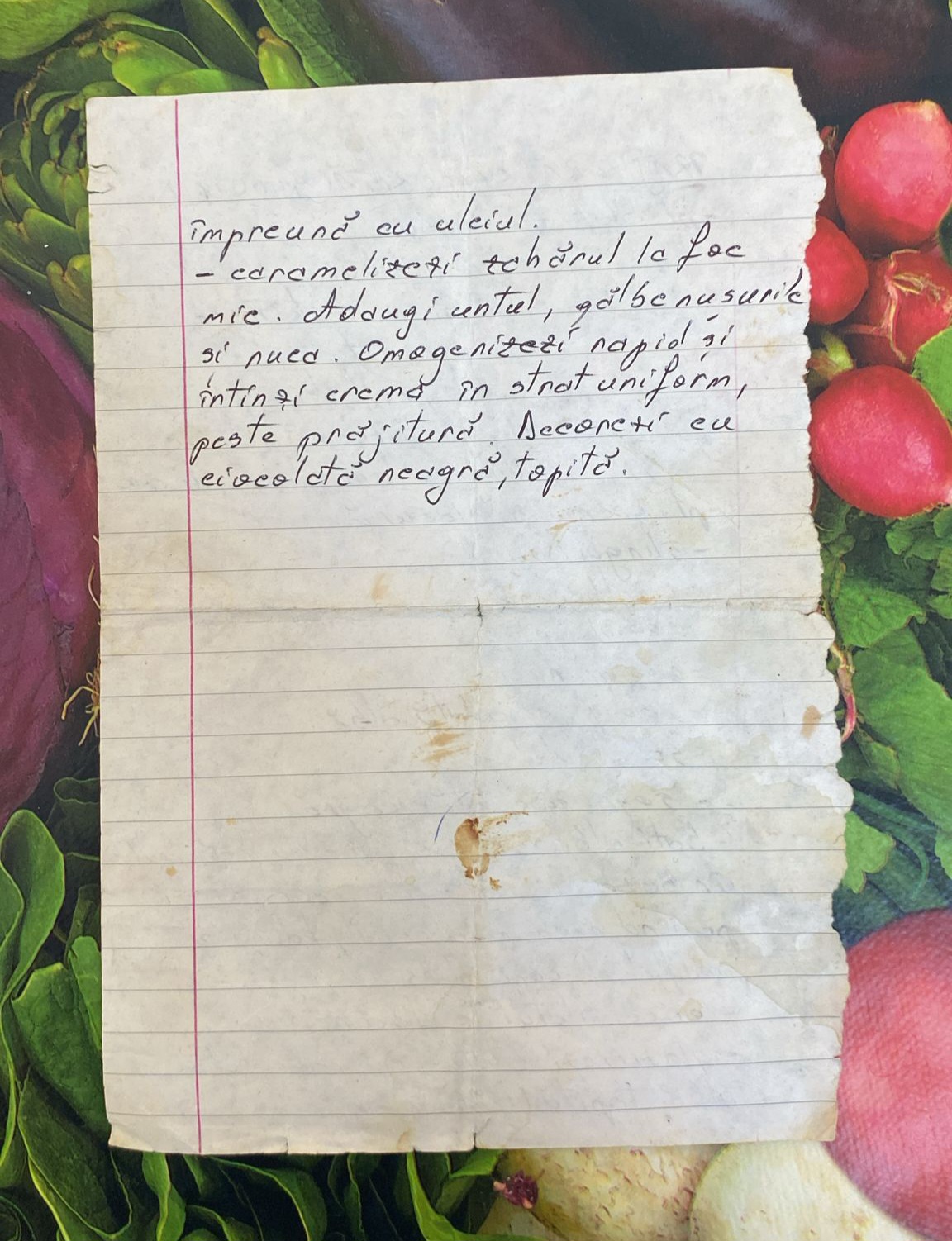 Descoperă Caietul de RețeteÎmpreună cu uleiul Caramelizezi zaharul la foc mic. Adaugi untul, gălbenușurile și nuca. Omogenizezi rapid...