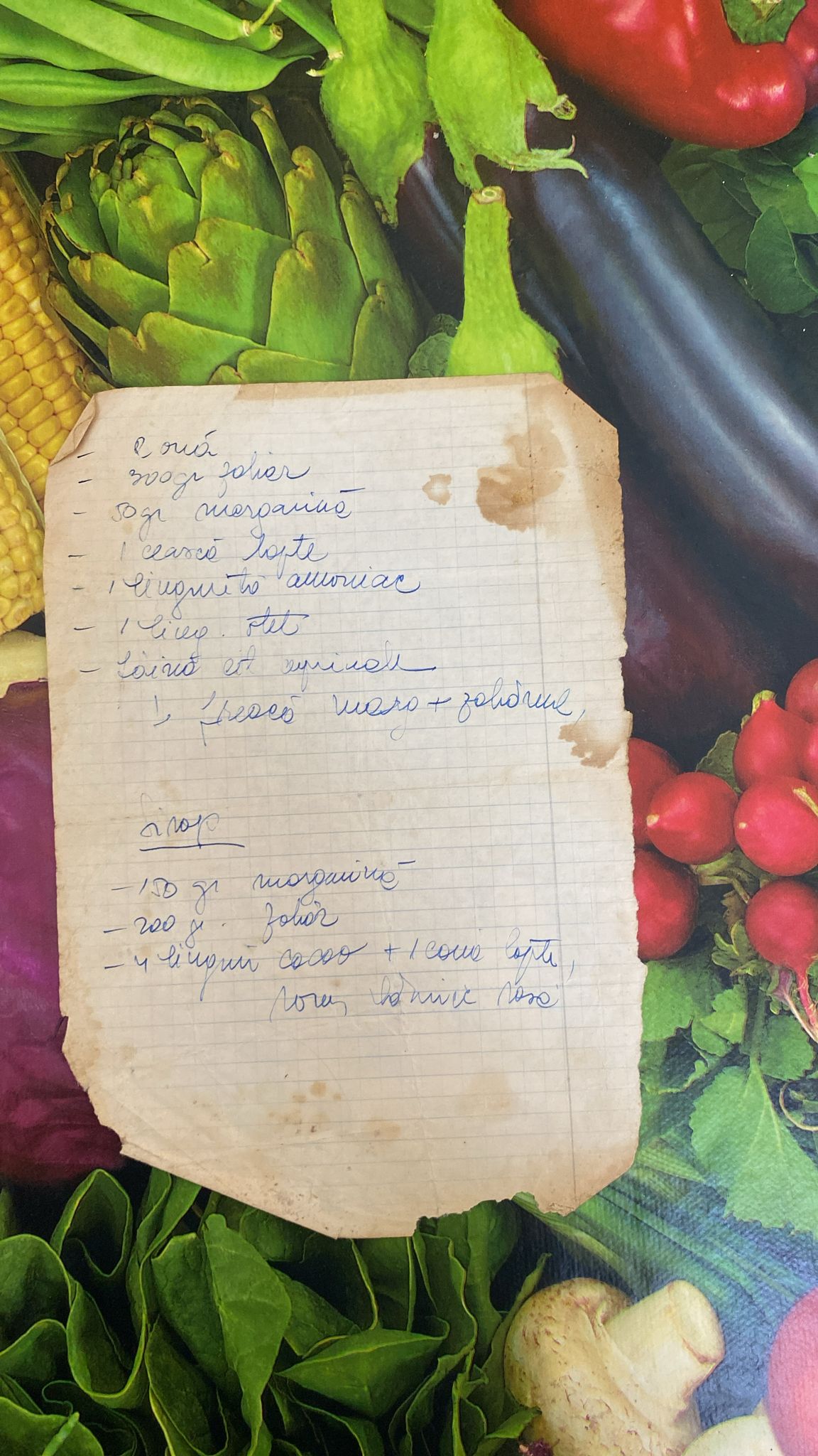 Foi 7 linguri .....(ilizibil) 7 ....(ilizibil) 7linguri lapte 2 lingurite amoniac s...(ilizibil) Lapte caldut 2...