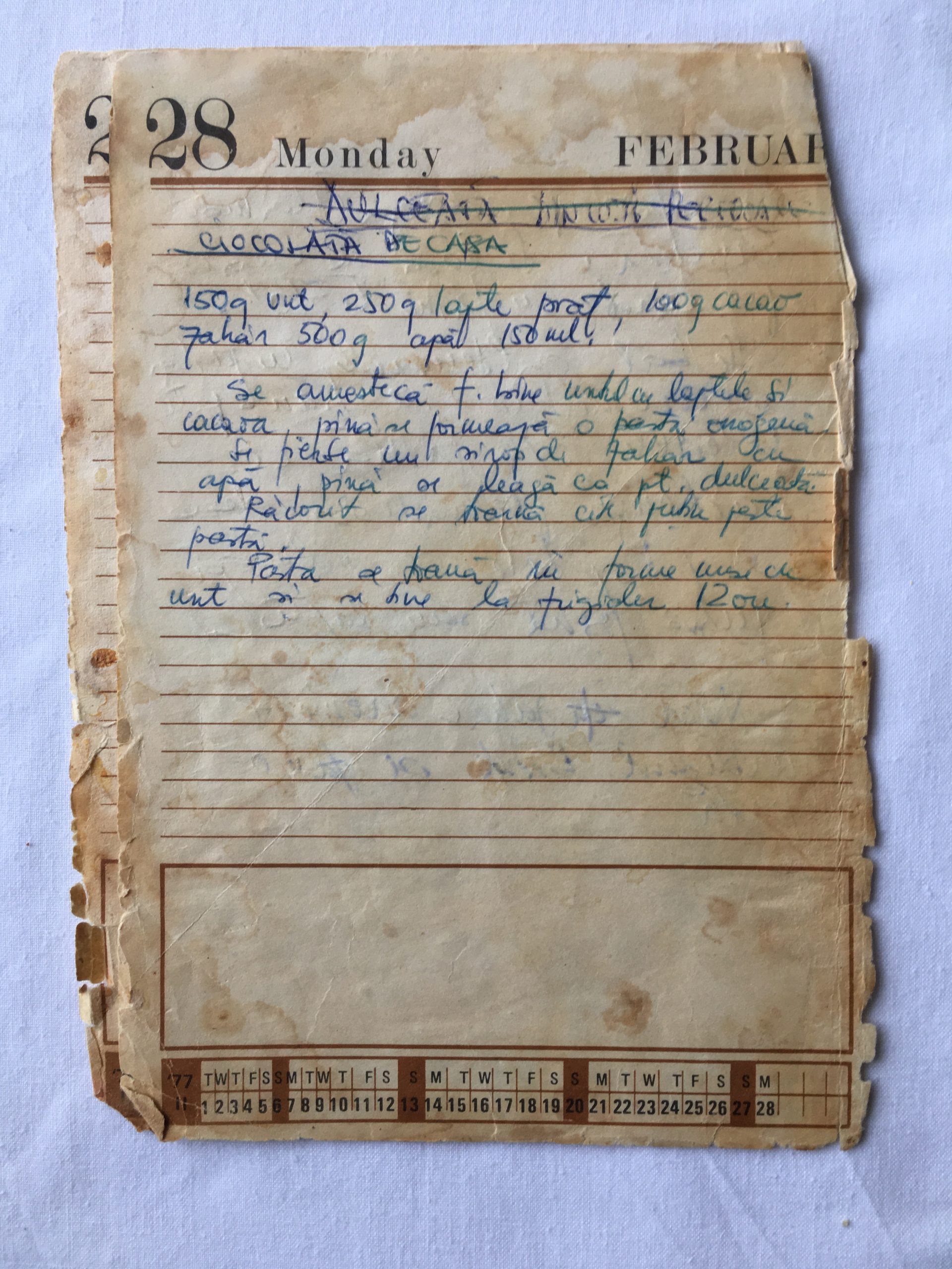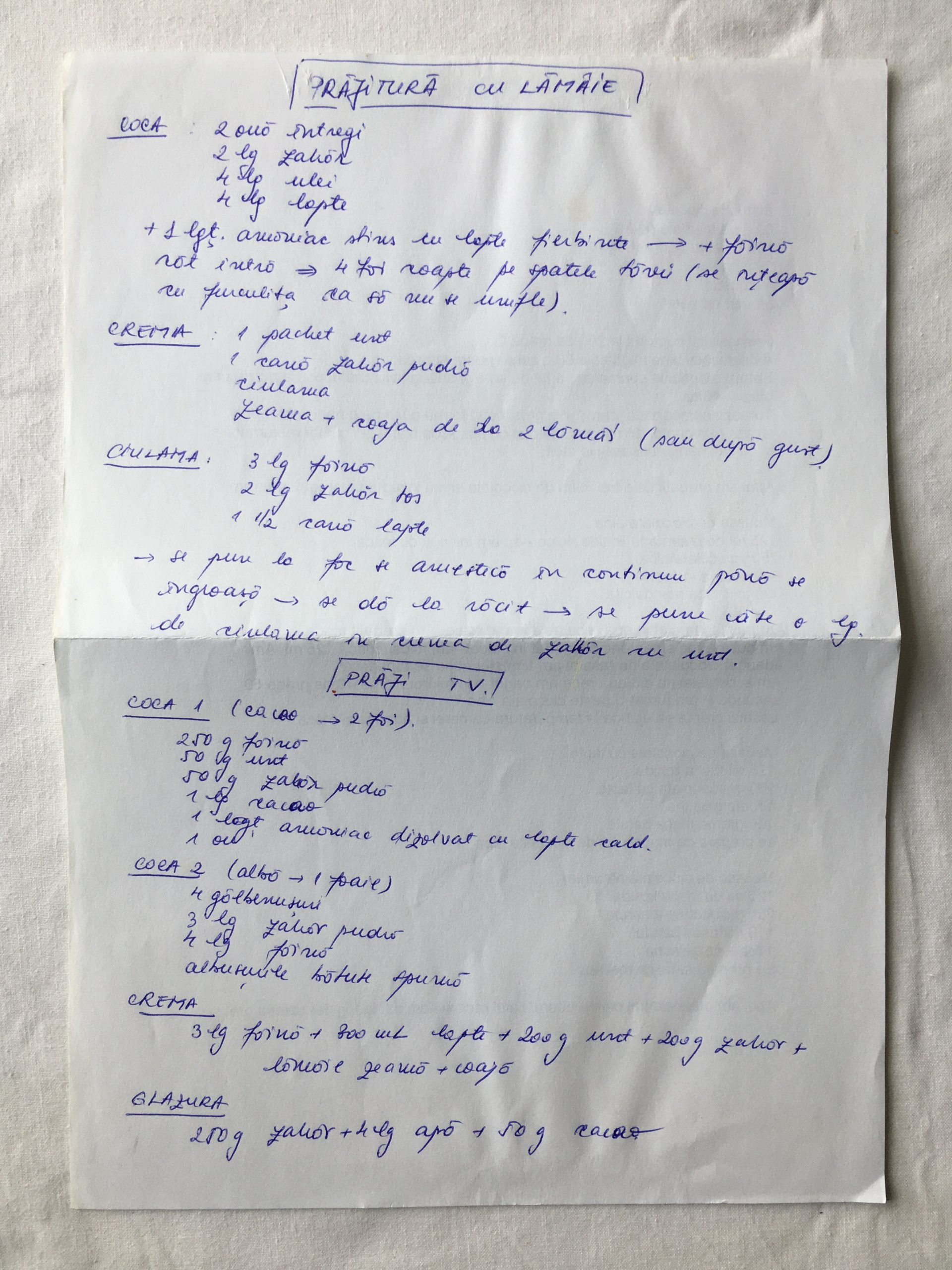 Caietul de Rețete apare în 1995, odată cu Ștefan, băiatul Ancăi. „Gata, ai copil, trebuie să înveți să faci dulciuri!” – așa i-a pus Speranța caietul în brațe Ancăi, unul deja început, cu rețete din propriul caiet, adunate din familie și de la întâlniri cu gusturi memorabile. Astăzi stă scris în două feluri, dovadă că dulciurile au devenit un obicei de-a le face și aduna pentru cei dragi.