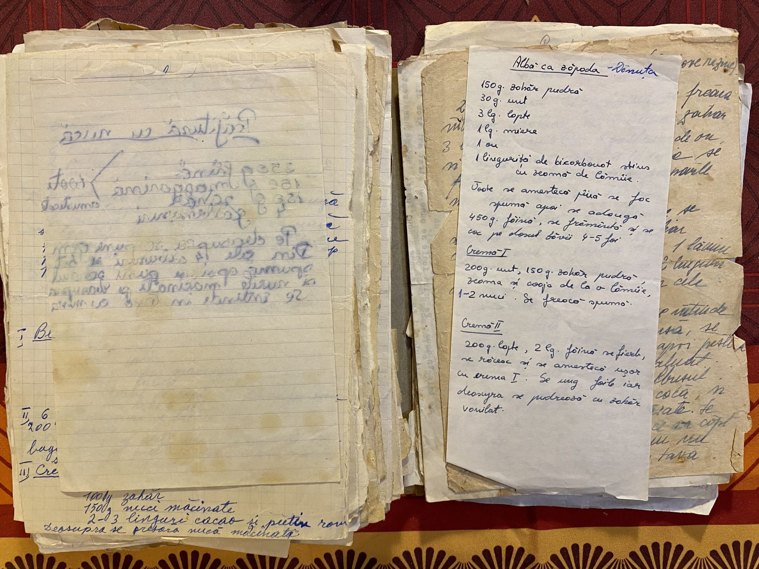În ultimii ani de viață, Bel nu mai avea energie și chef să facă prăjituri. La fel ca rezistența prin cultură, rezistența prin gătit se încheiase. Când mergeam pe la ea ne mai răsfăța doar cu cafele și dulcețuri. După ce a murit, n-am mai mâncat prăjituri. Știam că nu voi mai regăsi gustul copilăriei și că voi sfârși prin a fi dezamăgită. Din caietul bunicii nu mai gătește nimeni. Ar fi ca încercarea de întoarcere acasă din Tinerețe fără bătrânețe. Imposibilă și potențial fatală. Așa că îl lăsăm să fie un fel de clutter fizic și emoțional cu care nu știm ce să facem. Dar pot să jur că atunci când îl deschid simt miros de vanilie și de zahăr, aud cuptorul duduind și pe Bel citind o rețetă de demult.