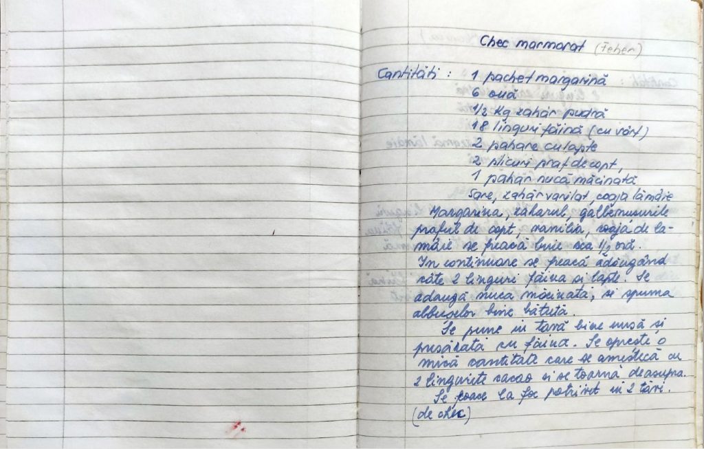Se pune în tavă bine unsă şi presărată cu făină. Se opreşte o mică cantitate care se amestecă cu 2 linguriţe cacao şi se toarnă deasupra. Se coace la foc potrivit în 2 tăvi (de chec).