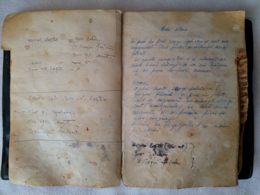 2 căni lapte; 200 gr. zahăr și 5 linguri făină – se pun la fiert. Când se îngroașă, se adaugă 200 gr. unt (margarină). Se lasă să se răcească și se freacă până se omogenizează.
