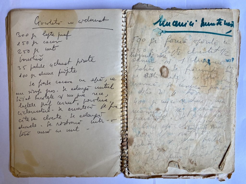 Se adaugă untul tăiat bucățele și un [ilizibil] rece, laptele praf cernut, vanilină, ciclamatul.
