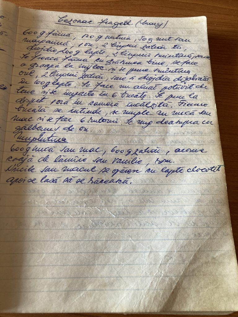 Se freacă făina cu grăsimea bine, se face o groapă la mijloc și se pune smântâna, oul, 2 linguri zahăr, sare și drojdia dizolvată în 100 g lapte. Se face un aluat potrivit de tare și se împarte în 6 bucăți. Se pune la dospit 1 oră în camera încălzită. Fiecare bucată se întinde, se umple cu nucă sau mac și se fac 6 rulouri. Se ung deasupra cu gălbenuș de ou.