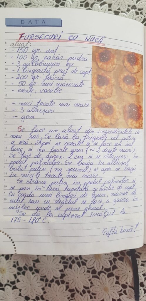 Se strâng puțin în podul palmelor și se pun în tavă tapetată cu hârtie de copt. Cu coada unei linguri de lemn, mâner de cuțit sau cu degetul se face o gaură în mijloc unde se pune gemul.