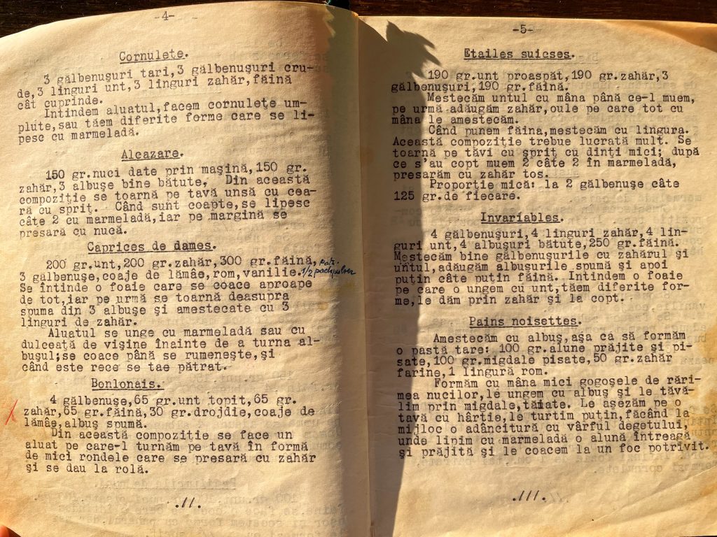 Amestecăm cu albuș, așa ca să formăm o pastă tare: 100 gr. alune prăjite și pisate, 100 gr. migdale pisate, 50 gr. zahăr farine, 1 lingură rom.