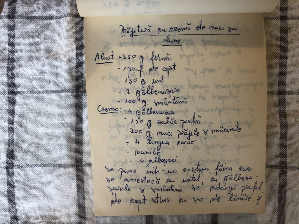Se unge cu unt tava, se pune o foaie, apoi se adaugă crema și se acoperă cu cealaltă foaie. Se bagă în cuptor la foc potrivit și se lasă până se rumenește.