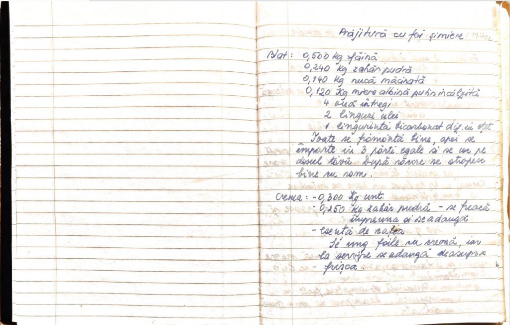 Toate se frământă bine, apoi se împarte în 3 părţi egale şi se coc pe dosul tăvii. După răcire, se stropesc bine cu rom.