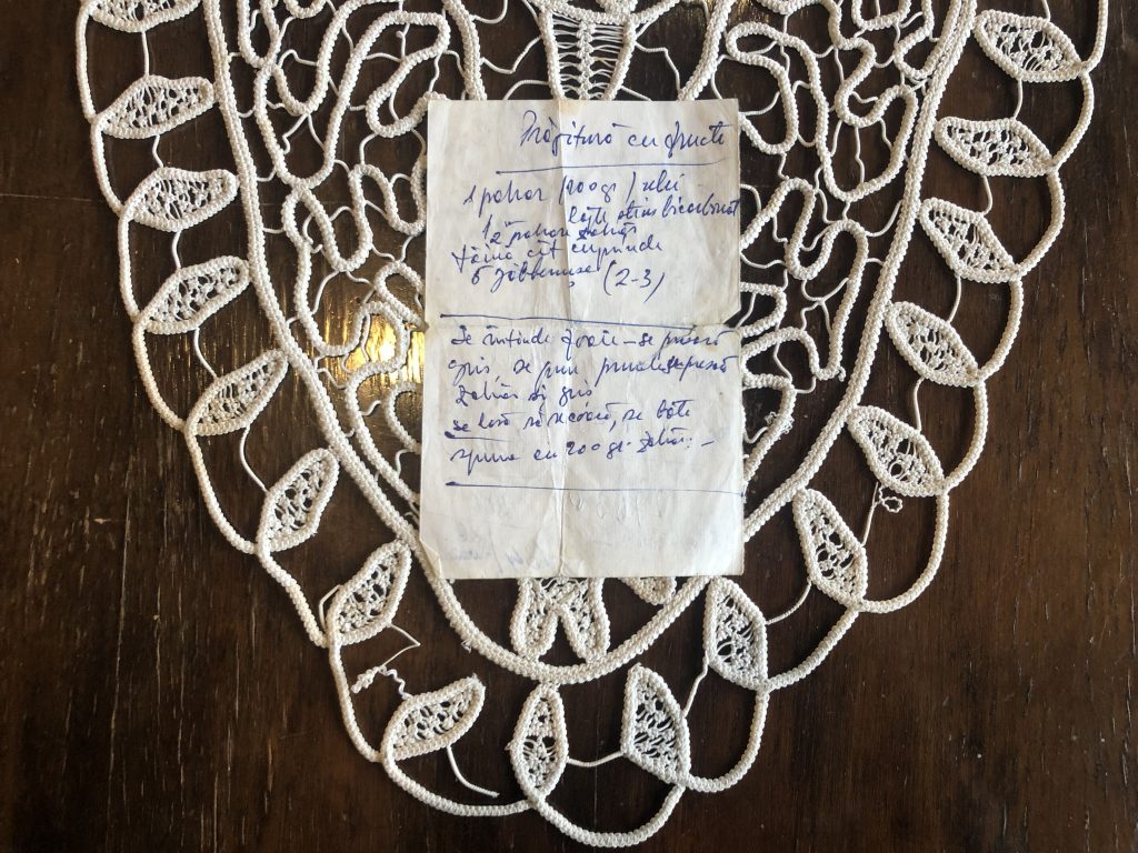 Un pahar ulei, un pahar lapte, puțin bicarbonat, 2 pahare zahăr, făină cât cuprinde, 5 gălbenușe.