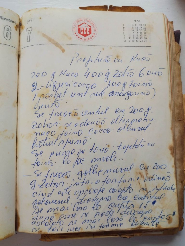 Se freacă untul cu 200 g zahăr se adaugă alternativ nuca, făina, cacao, albușul bătut spumă.