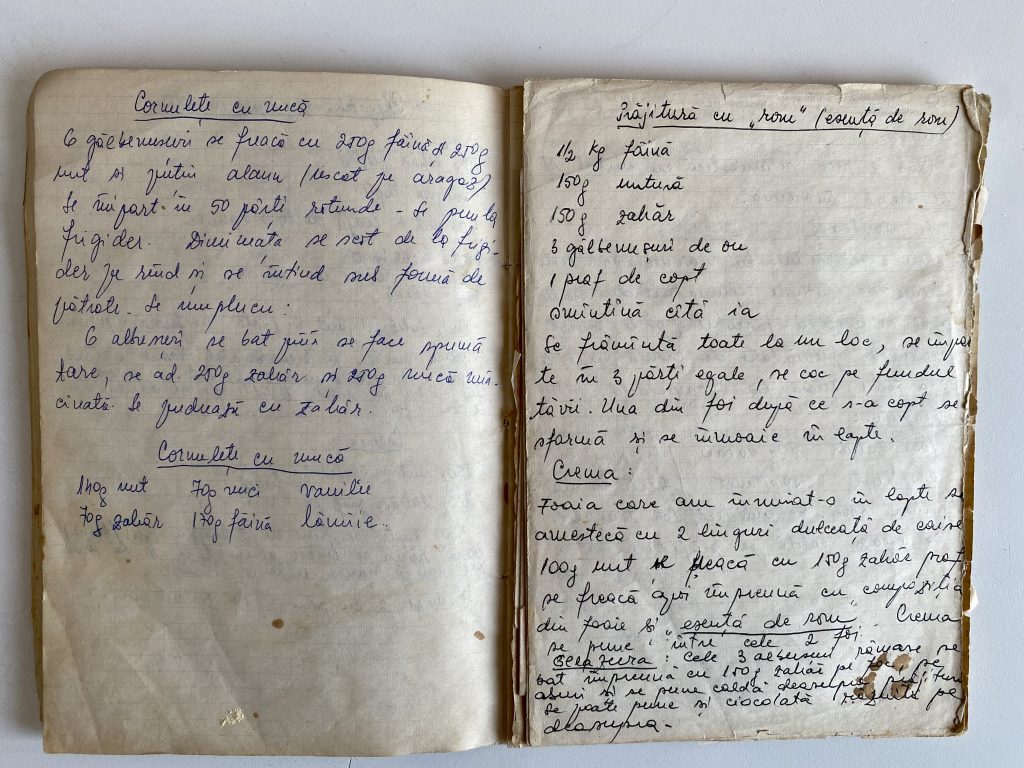 100 g unt se freacă cu 150 g zahăr praf. Se freacă apoi împreună cu compoziția din foaie și esență de rom