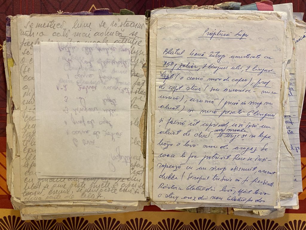 4 ouă întregi amestecate cu 150 g zahăr, 7 linguri ulei, 7 linguri lapte (o ceașcă mare de cafea), praf de copt stins (sau amoniac – nu se usucă), aromă (pusă în sirop nu aluat) și nucă pisată 6 linguri și făină cât cuprinde ca să iasă un aluat de chec mai moale. Se unge și se tapetează o tavă mare de aragaz. Se coace la foc potrivit. Rece se însiropează cu un sirop obișnuit, aromat dulce (siropul trebuie să fie fierbinte). Răstorn blatul din tavă, spăl tava, o șterg, așez din nou blatul pe dos și însiropez fierbinte. Plusul îl răstorn și a 2a reîncălzesc siropul și din nou însiropez.