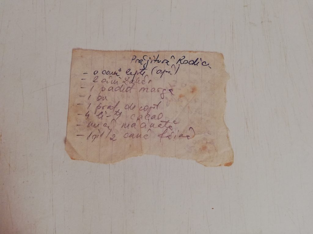 Când s-a copt se pune deasupra lingurițele rămase plus 1 lingurițe cacao și zahăr fiecare.