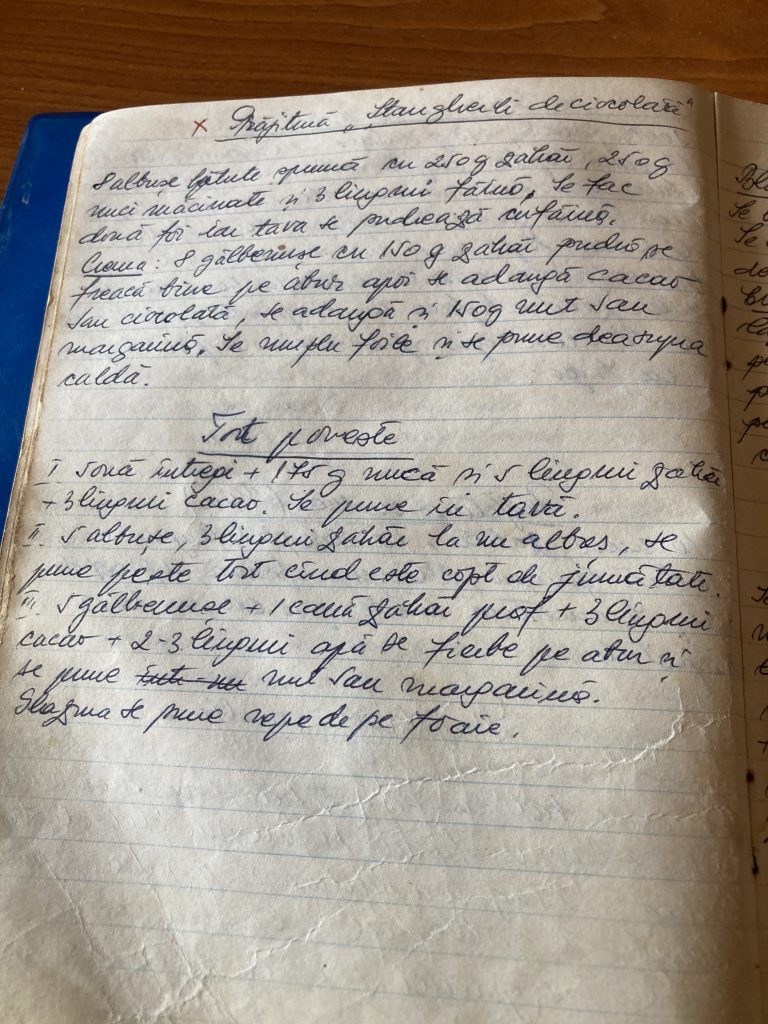 I. 5 ouă întregi + 175 g nucă și 5 linguri zahăr + 3 linguri cacao. Se pune în tavă.