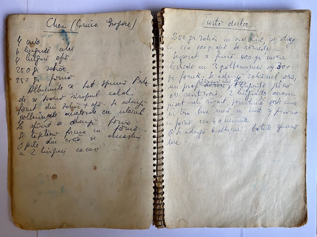Se adaugă zahărul ars, 1 praf de sare, 2 linguri ulei [ilizibil], o linguriță plină de scorțișoară, 2 lingurițe anason pisat sau râșnit, vanilină.